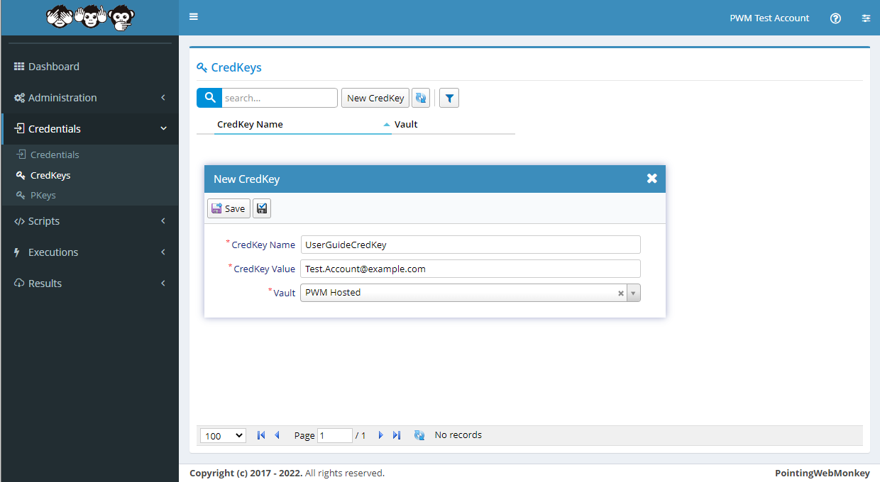 and selected "PWM Hosted" as the 'Vault' to store the CredKey